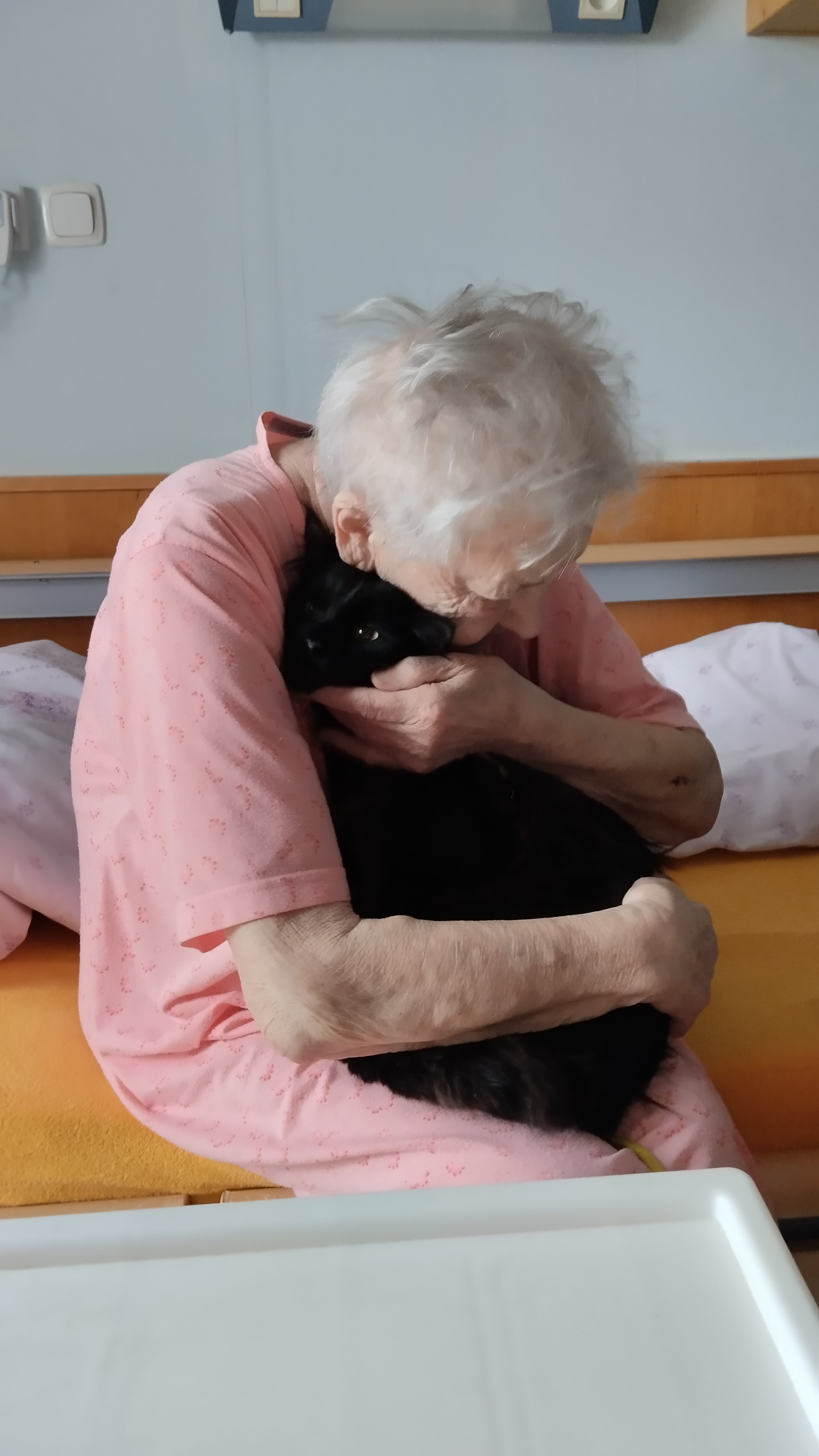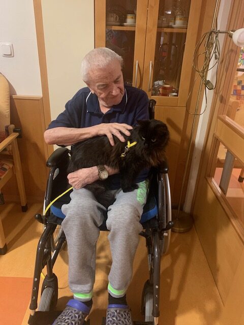 Během setkání v rámci návštěvy koček měly klientky možnost kočku si hladit, chovat ji v náručí nebo si jen užívat její přítomnost. Jemný dotek a předení působí uklidňujícím dojmem a často otevírají prostor ke vzpomínkám na vlastní domácí mazlíčky. Felinoterapie tak přirozeně podporuje komunikaci, aktivizaci a sociální kontakt mezi klienty.